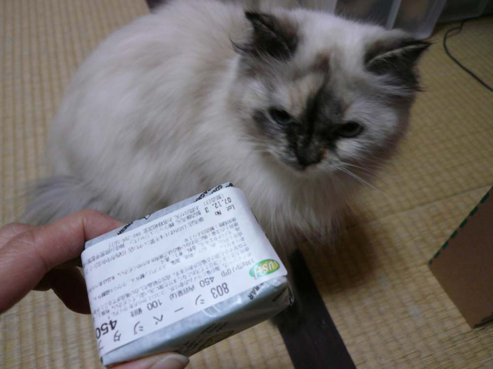 以前にアイムスのキトンをあげたら、開封した時に黄色の粉?が多いような気がしたのですが、るーちゃんが食べない上に吐いちゃって、アイムスに連絡したら「アメリカ製がオランダ製に変更になった」とのこと。
